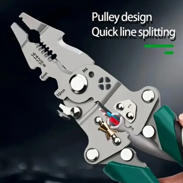 접이식 와이어 스트리핑 플라이어, 다기능 케이블 커팅 크리퍼, 중량 금속 구조, 가정 개조, 산업용 및 야외 활동에 이상적, 전기 플라이어 | 접이식 디자인 | 내구성 구조 > 공구
