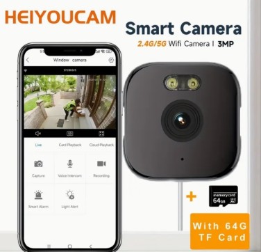 64G 카드 포함 3MP 창문용 카메라, 2.4GHz&5GHz 와이파이 실내 보안카메라, 알색 야간 투시, 인물 및 동작 감지, 24/7 녹화, 간편 설치 > 잡화