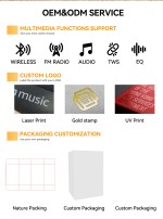 Support: ●BT(Bluetooth), ●FM Radio, ●USB, ●TF Card, ●AUX, ●MIC, ●GT, ●TWS(True Wireless Stereo), ●RGB Lighting, ●LED Display, ●Volume knob.