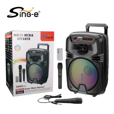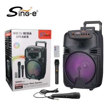 Product size: 338*295*493mm Consumer box size: 345*305*500mm Master carton size: 705*625*518mm CBM: ( 0.228 )/CTN Packing quantity: 4 PCS NW: 17.0 KG GW: 18.5 KG ●Wireless Microphone ●Wired Microphone ●Type-C Charging cable ●Remote control ●User Manual