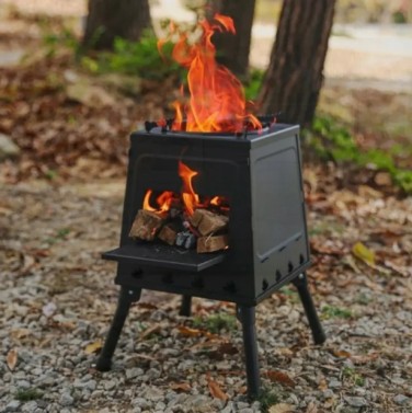 휴대용 접이식 화로 스토브 - 소형 캠핑 벽난로 (불통 개방, 재받이 & 안정성 다리 포함) - 내구성 강한 탄소강 야외 오븐, 캠핑, 뒷마당, 피크닉, 해변용 - 전기 불필요 - 요리, 끓임, 구워내기, 난방, 뒷마당 바베큐에 이상적, 접이식 디자인, 튼튼한 구조, 캠핑 및 하이킹을 위한 제품