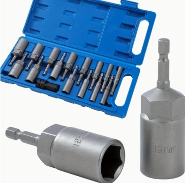 16피스 너트 드라이버 딥 소켓 세트 메트릭 5.5-19mm 1/4인치 헥스 샹크 자석 볼트 제거기, 전동 드릴 및 스크루드라이버용, 길이 80mm > 공구