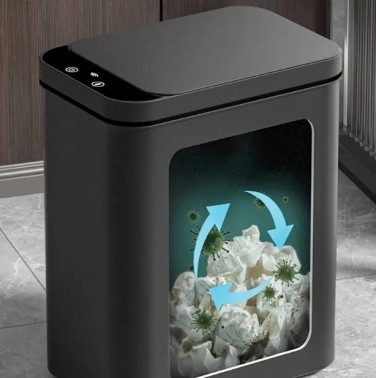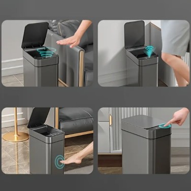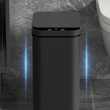2개 세트 블랙 자동 센서 휴지통, 터치리스 슬림형 쓰레기통 - 침실/사무실/주방용 스마트 전동 좁은 쓰레기통, 욕실/세탁실/캠핑카용 모션센서 무선 휴지통 > 생활용품