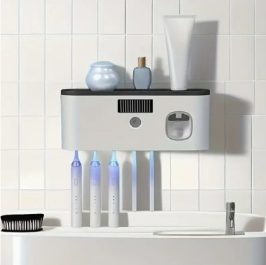 1 스마트 칫솔 홀더 자동 칫솔 크림 디스펜서 - 벽걸이, 5 슬롯 보관함, 내구성 플라스틱, USB 충전식 리튬 배터리, 현대 욕실 정리 및 홈 데코, 욕실 칫솔 랙, 욕실 정리 | 현대 칫솔 홀더 | 내구성 플라스틱 홀더, 칫솔 보관함 정리기 > 생활용품