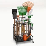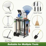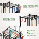 1개 헤비듀티 스틸 정원 도구 정리대 - 50개 이상의 도구 수납 가능, 조절 가능 & 컴팩트한 차고/저장실 정리용, 갈퀴, 빗자루 등에 편리한 후크 포함 - 내구성 있는 블랙 메탈 야드 도구 타워 랙 > 정원
