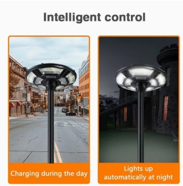 인간체 센서가 있는 태양광 UFO 거리등 - 원격 제어, 빌라, 커뮤니티 및 광장용 광택 마감, 원형, 정원 램프 > 정원