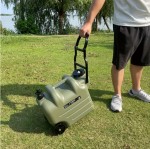 28.01L 휴대용 물통 바퀴 & 당김 막대 - 대용량 PE 사각 컨테이너, 캠핑, 하이킹, 피크닉용 올리브 그린과 검은 바퀴, 야외 물 운반 | 이동 가능한 물 저장 | 튼튼한 손잡이 디자인 > 캠핑용품