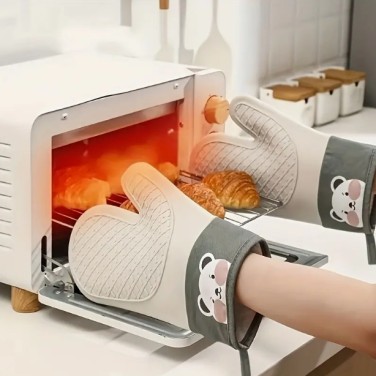 1쌍 두꺼운 실리콘 내열 장갑 - 미끄럼 방지 오븐 & 전자레인지 안전 베이킹 장갑, 귀여운 곰 디자인, 주방용 고온 저항성, 바비큐 필수품, 야외 요리 및 야외 요리용 - 내구성 있고 쉬운 세척, 손세탁 전용, 바비큐 액세서리, 스타일리시한 주방 용품, 미끄럼 방지 그립, 바비큐 애호가용, 스크래치 방지 마감, 열에 강한 소재, 요리 장갑, 그릴링 애호가를 위한