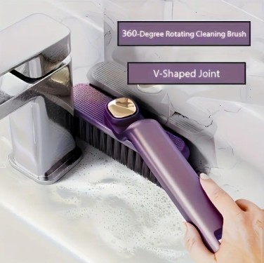 3-in-1 보라색 내구성 있는 플라스틱 브러시, 360도 딱딱한 브러시, V자형 커넥터, 욕실 타일 및 벽 접합부 청소용 다기능 회전 청소 브러시 > 잡화