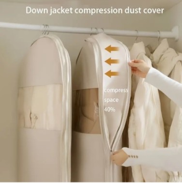 신형 다운 재킷 압축 방진 옷걸이 가방 - 투명 수납 정리함, 침실·사무실·기숙사용, 2가지 색상 선택 가능 > 잡화