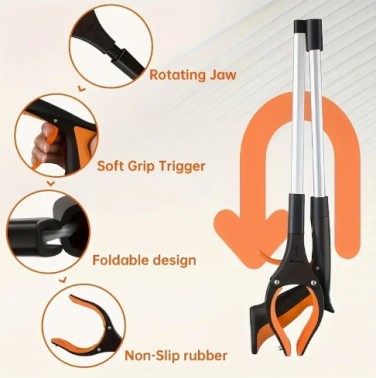 접이식 리치 그랩버 도구 - 32인치, 360° 회전 턱 및 자석 팁, 쓰레기 집게용 상부 그랩버, 경량 디자인, 노인/장수용 > 잡화