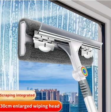 2-in-1 유리 청소 스크류 및 스크레이퍼 - 그레이 스펀지 패드가 장착된 인간 중심 핸들, 창문, 바닥, 벽, 등에 이상적 - 거실, 침실, 욕실, 주방, 자동차 창문 청소에 완벽, 창문 청소 도구 | 인간 중심 핸들 | 내구성 있는 플라스틱 패드, 유리 청소제 > 잡화