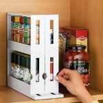2단 풀아웃 회전 스파이스 랙 정리대 - 다용도 수납 디자인의 공간 절약형 주방 보관함, 오일 및 공예용 | 내구성 플라스틱 카운터탑 선반, 욕실 및 사무실용 주방 정리대, 효율적인 구획 설계 > 잡화