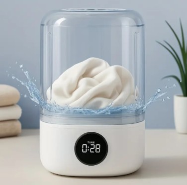 4000mAh 배터리, LED 디스플레이, 한 터치 작동, 공간 절약 디자인, 기숙사, RV, 욕실, 수직 보관, 기숙사 룸 필수품, 휴대용 세탁기 장치, 내구성 플라스틱, 미니 세탁기