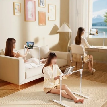 조절 가능하고 접이식 알루미늄 태블릿 스탠드 - 침대 옆 및 데스크탑 홀더 클램프 포함, 폰과 태블릿을 위한 텔레스코픽 리프팅 지원, 솔기가 없는 손상 없음, 화이트, 레저 기술 지원 | 현대적인 태블릿 홀더 | 알루미늄 합금 스탠드, 태블릿 홀더 스탠드 > 잡화