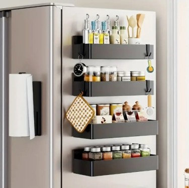 2/4개 대형 자석 플라스틱 보관 바구니, 냉장고, 전자레인지 및 세탁기용 - 냉장고 사이드 패널 갭에 스파이스 랙 홀더가 있는 다기능 주방 정리함, 냉장고 정리함 및 용기, 냉장고 보관, 냉장고 액세서리, 공간 절약 디자인, 무드릴 설치, 청소 용이, 바쁜 가정, 작은 공간 거주 > 생활용품