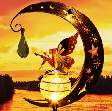 태양광 정원 조명 요정 야외 장식, 요정 달상 스태츄 - IP65 실외용 정원 및 마당 예술 조명, 채널 잔디 요정 조명, 마당 장식 > 정원