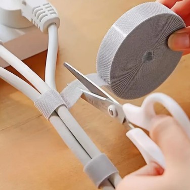 1롤 재사용 가능한 케이블 타이 - 다용도 고정 테이프 - 코드 정리 및 와이어 관리 및 보관 - 배터리 불필요 > 생활용품