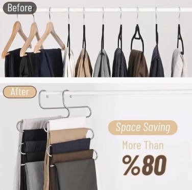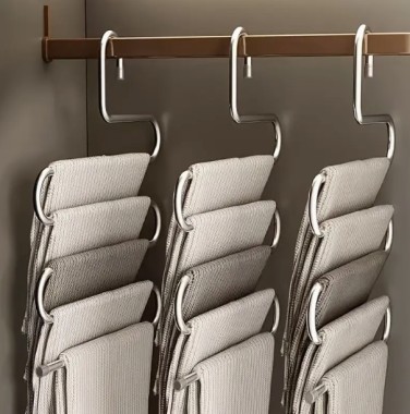 5단 스테인리스 스틸 바지 걸이 – S자형, 미끄럼 방지, 자국 없는 다층 정리대, 청바지 & 바지용 이상적, 정리된 옷장 정리에 적합한 공간 절약 디자인, 옷 정리 수납함 > 생활용품