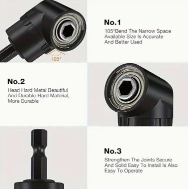 6개 스틸 드릴 비트 세트, 3개 360° 회전 1/4, 3/8, 1/2 소켓 어댑터, 2개 6각 105° 각도 드릴 어댑터, 90° 각도 드릴 - 다용도 홈 개선 및 건설용 드릴 액세서리, 건설 드릴 비트 | 다용도 드릴 액세서리 | 내구성 있는 드릴 비트, 드릴 액세서리 > 공구