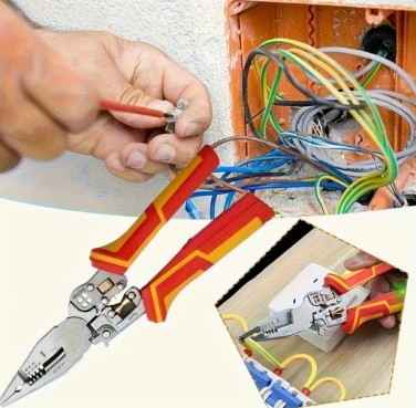 다기능 와이어 스트리핑 플라이어, 니들 노즈 및 커팅 기능 - 12-26 AWG 게이지, TPR 핸들, 전기 기술자 & DIY 프로젝트용 안전 잠금장치, 인체공학적 그립, 내구성 있는 구조 > 공구
