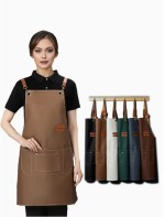 인공 가죽 방수 앞치마, 경량 주방용 앞치마, 남녀 공용 크로스 스트랩 디자인, 큰 포켓과 작은 포켓 포함, 요리사 조리, 정원 가꾸기, 레스토랑, 바비큐, 미용 및 매니큐어 작업복 > 생활용품