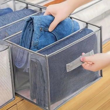 3개 세트의 고품질 옷장용 천 스토리지 박스 - 손잡이가 있는 접이식 서랍 정리함, 투명한 메쉬 디자인, 공간 절약형 의류 보관 시스템, 셔츠, 바지, 속옷, 양말에 적합 - 가벼우며 사용하기 쉽고, 회색 색상, 컴팩트한 디자인, 의류 정리에 필수품입니다. > 생활용품