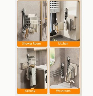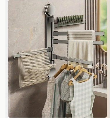 1개 알루미늄 접이식 타월 랙 - 드릴 없는 흡착컵 설치, 공간 절약형 벽걸이 욕실 정리대, 스타일리시한 블랙 메탈 디자인, 내구성 있는 금속 구조로 욕실, 발코니 및 침실 수납용, 욕실용 타월 홀더, 발코니 보관함, 슬림한 메탈 마감, 드릴 없는 설정, 가운 & 타월 후크 > 잡화