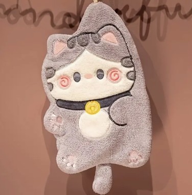 3개 세트 귀여운 고양이 타월 - 빠른 건조, 초흡수 욕실 & 주방 타월 (걸이 포함) - 부드러운 플러시 질감, 그레이/베이지 꽃무늬 디자인, 욕실용, 주방용, 고양이 애호가를 위한 선물, 홈 데코, 재미있는 디자인, 내구성 있는 소재, 현대적 스타일, 반려동물 애호가 선물 > 생활용품