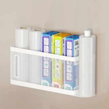 1개 자석 주방 정리대 - 마늘 압착기 디자인, 양념병 보관함, 롤업 공간, 랩 & 쓰레기 봉투 수납 가능 - 공간 절약형 카운터탑 또는 냉장고용, 세련된 메탈릭 마감, 다목적 정리함, 컴팩트한 설계, 견고한 구조, 소형 공간 생활용 > 잡화