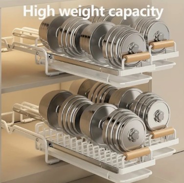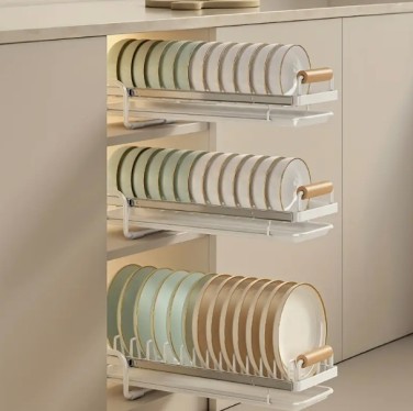 1개 슬라이드 아웃 식기 건조대 - 이중 레이어 캐비닛/카운터탑 정리함, 내구성 강한 대용량 메탈 접시 건조대, 공간 절약형 설계, 접시·그릇·냄비·팬 보관용, 부드러운 슬라이딩 기계식, 녹 방지 소재, 컴팩트 주방 정리대, 아파트 생활에 적합 > 잡화