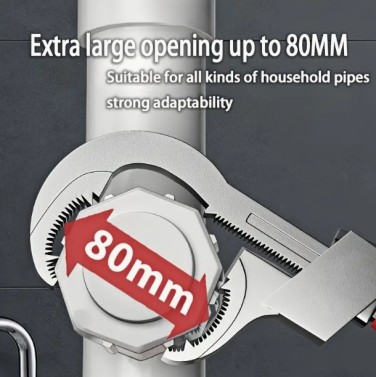 조절 가능한 수도 파이프 렌치, 다기능 배관 도구, 욕실 수리, 가정 유지 관리, 자동차 작업을 위한 큰 턱 용량 스패너, 6단 속도 조정, 기계 작동, 금속 재질, 전기 불필요 - 1개