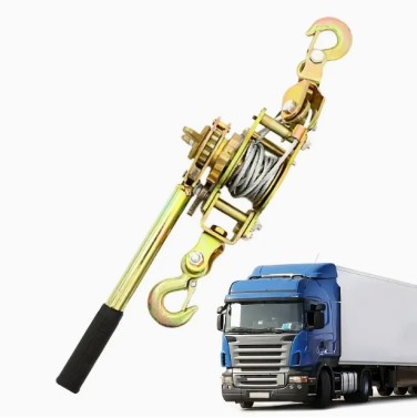 수동 케이블 차량, 두 개의 후크가 장착된 강력한 스틸 케이블 트랙터로 화물 묶기 및 조임 기능. 로프는 스틸 제작. 휴대용 타이어 고정 케이블 차량 트레일러