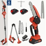 2in 1 무선 텔레스코픽 폴 톱 세트, 15.24cm 미니 체인소우 세트, 안전 잠금 기능 포함, 높이 및 각도 조절 가능, 효율적인 절단, 가지 정리 및 목재 작업에 적합 > 공구