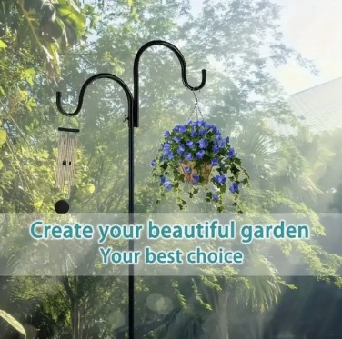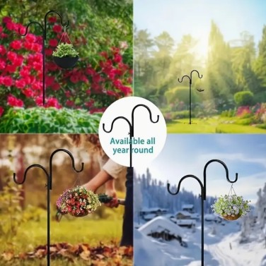 5개의 뿔이 있는 바닥, 조절 가능한 먹이대, 태양광 조명 및 식물 후크가 있는 중량급 정원 양서류 후크 새 먹이대 - 검은색 야외 결혼식 장식, 뒷마당, 정원, 또는 파티오용, 야외 새 먹이대, 파티오 장식, 현대 정원 액세서리, 튼튼한 구조 > 정원