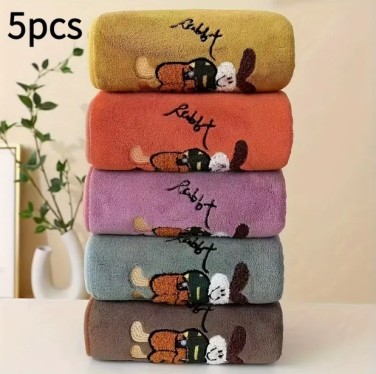 5개 세트 대형 (35x75cm) 빠른 건조 흡수 타월, 귀여운 토끼 자수가 있는 고중량 부드러운 목욕타월 5색 - 봄/여름 신상 2025 > 생활용품