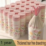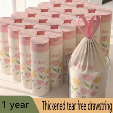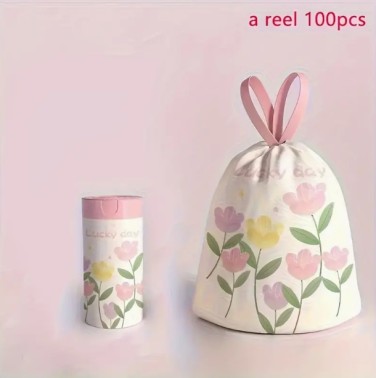 100팩 라벤더 향의 두꺼운 대형 끈끈이 쓰레기봉투 - 고밀도 폴리에틸렌, 주방, 욕실, 침실 및 화장실용 다목적 일회용 보관백 - "해피 데이" 텍스트가 있는 핑크 꽃무늬 패턴, 찢어짐 방지 > 생활용품