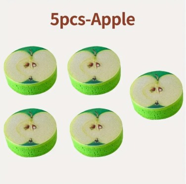 세계적인 과일 패턴을 가진 세층 디스플레이 소독 스펀지 - 폴리에스터 주방 청소 도구, 오렌지, 사과, 꽃 모양으로 디스플레이, 식기, 냄비, 주방 도구, 식기 세척 액세서리 > 생활용품