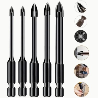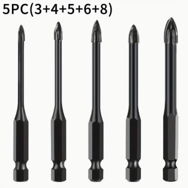5pcs 고효율 범용 드릴링 도구, 육각 생크 크로스 리밍 삼각형 드릴 비트, 유리 세라믹 목공 전동 공구, 경질 합금 녹 방지 액세서리, 크로스 스피어 헤드 드릴 비트 3/4/5/6/8mm > 공구