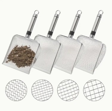 4개 중형 금속 토양 스크린 - 11인치 휴대용 가든 툴 - 모래, 토양 및 퇴비篩选 | 메쉬 사이즈: 2mm, 2.8mm, 3.8mm, 5mm | 내구성 있는 구조 - 식물, 가드닝 및 조경을 위한 토양篩选 툴 | 인체공학 디자인 | 내구성 있는 금속 스크린 > 정원