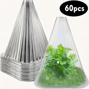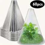 60개 대형 재사용 가능한 투명 플라스틱 식물 보호 콘, 수직 홈 포함, 빛 및 지지대, 동추 및 새장식 방어, 씨앗과 식물을 위한 통기성 메쉬 정원 커버, 식물용 서리 가드 | 내구적인 구조, 야외 식물 보호자 > 정원