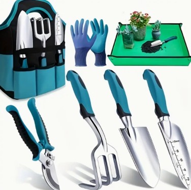녹슬지 않는 스테인리스 스틸과 알루미늄 합금으로 제작된 내구성 있는 정원 도구 세트 7개, 편리한 운반 가방이 포함된 손목용 정원 관리 도구 > 정원