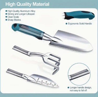 녹슬지 않는 스테인리스 스틸과 알루미늄 합금으로 제작된 내구성 있는 정원 도구 세트 7개, 편리한 운반 가방이 포함된 손목용 정원 관리 도구
