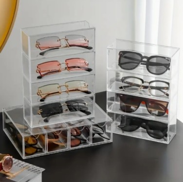 서랍이 있는 모던 클리어 데스크 오거나이저 - 패션 안경, 화장품 & 립스틱에 완벽 | 방진 보관 솔루션, 귀여운 사무용품, 별도의 칸막이, 선물