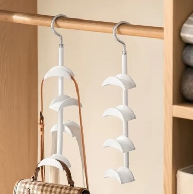 1/2pcs 드릴 없음 회전 가방 걸이 - 가정 및 상점용 다기능 옷장 정리함, 침실, 옷장 및 액세서리용 흰색 플라스틱 가방 보관 랙, 옷장 시스템 > 잡화