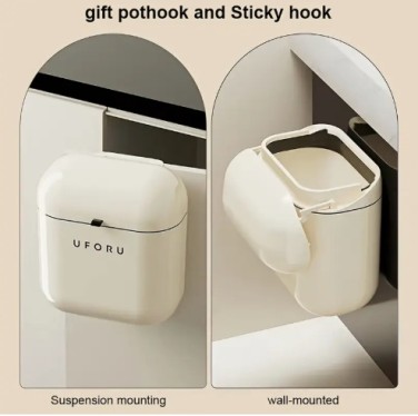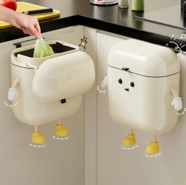벽걸이형 주방 쓰레기통 뚜껑 포함 - 드릴 필요 없음, 손쉬운 조작, 귀여운 만화 디자인, 내구성 있는 플라스틱, 집 & 욕실용 공간 절약, 욕실 쓰레기통|재미있는 디자인|내구성 있는 플라스틱, 욕실용 쓰레기통 > 잡화