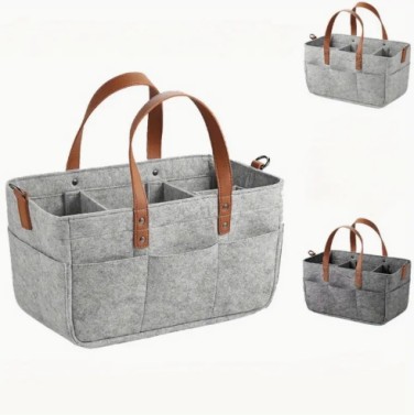 다용도 휴대용 바구니 카트 - 회색 인조 퍼 행잉 오거나이저, 대용량 접이식 수납 가방 & 다수의 구획 및 손잡이 포함 > 잡화