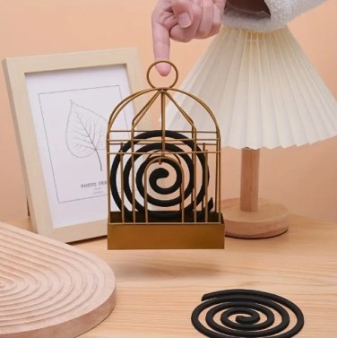1pc 우아한 금색 금속 모기 코일 홀더 - 휴대용 매달린 새집 디자인, 장식용 향초 연소기, 가정, 사무실 및 정원 야외 사용, 모기 방지|우아한 장식|금속 구조, 모기 코일 홀더