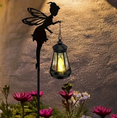 1/2 태양광 요정 실루엣 랜턴 - 재미있는 LED 정원 스테이크 라이트, 방수 금속 야외 장식, 파티오 및 장미 정원에 완벽, 크리스마스 또는 생일 선물로 이상적 > 정원