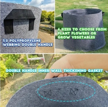 6개 회색 재사용 가능한 천 재배 가방 - 두꺼운, 통기성 좋은 & 접이식 컨테이너, 야채, 꽃 및 허브용 - 실내/외부 다용도 사용, 식물 성장 가방, 쓰레기 수집 가방 > 정원